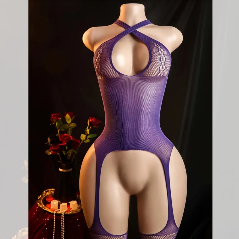 Deslumbra con este body erótico color morado, una prenda diseñada para resaltar la sensualidad femenina y despertar pasiones. Su diseño combina encaje transparente con detalles en red, escote profundo y tirantes cruzados que realzan el busto y estilizan la figura. El tejido elástico se adapta perfectamente al cuerpo, brindando comodidad y una silueta irresistible. Incluye…