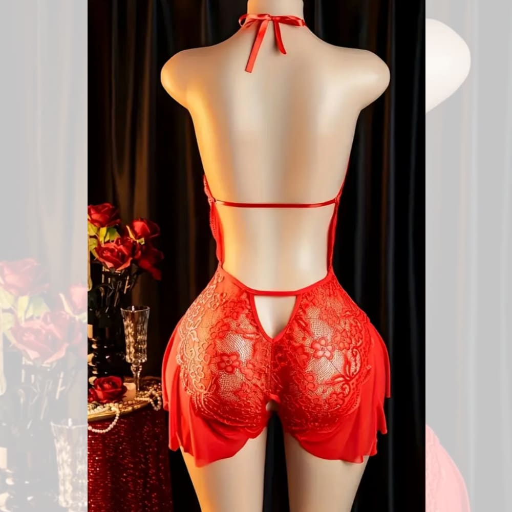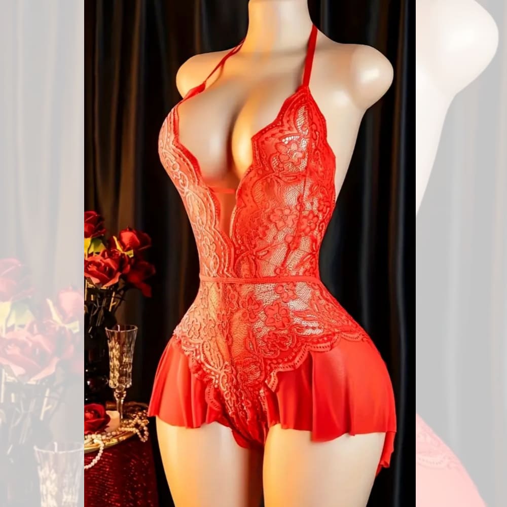 Deslumbra con este elegante bodydoll de encaje, diseñado para realzar tu figura y resaltar tu feminidad. Su delicado encaje floral con transparencias crea un look irresistible, mientras que la parte inferior con volantes de malla aporta un toque romántico y coqueto.El diseño con escote profundo y espalda completamente descubierta se ajusta perfectamente al cuerpo gracias…