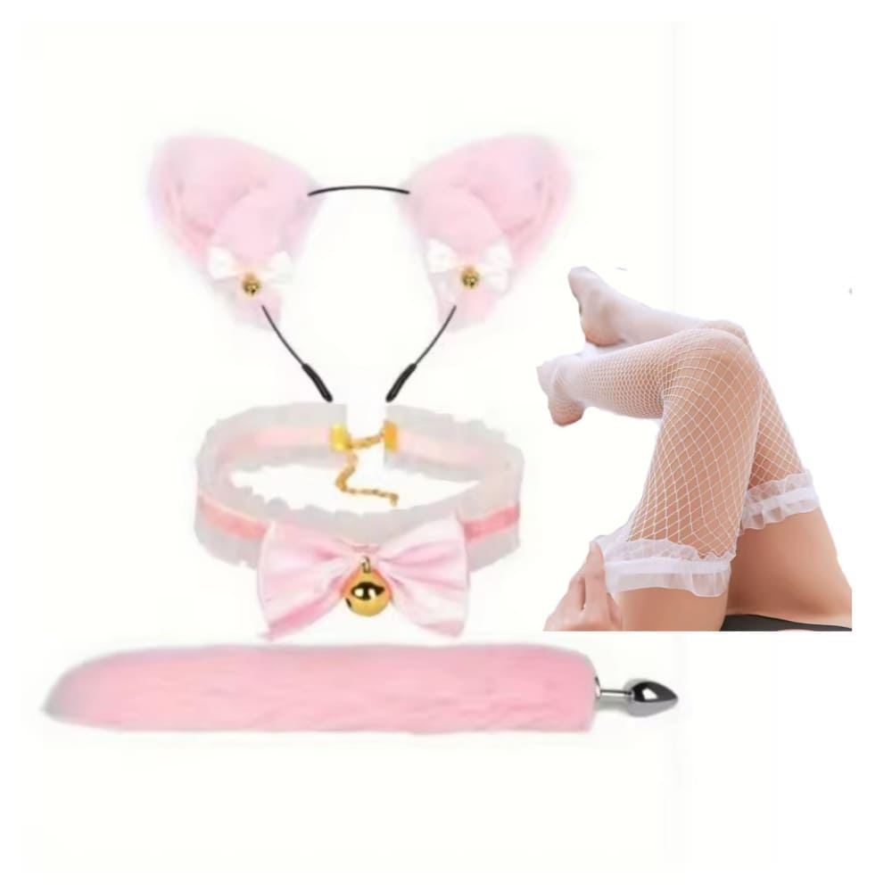 1 par de orejas + 1 collar + 1 par de medias de red + 1 cola de peluche